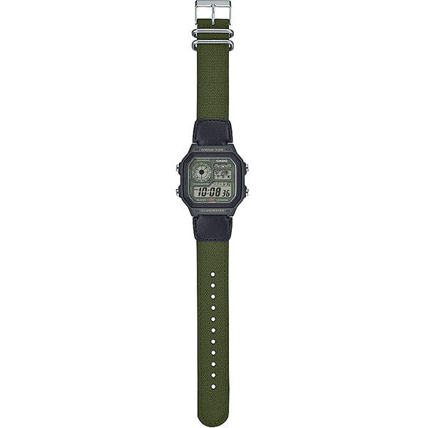 CASIO AE 1200WHUB 3AJF Men's Military Style Watch with Digital Display, Water Resistance, LED Backlight and Durable Resin Band