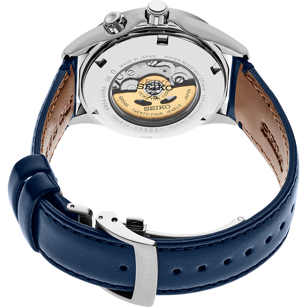 SEIKO Presage SPB377J1 Alpinist Blue Dial GMT Leather 200m Automatic Watch
