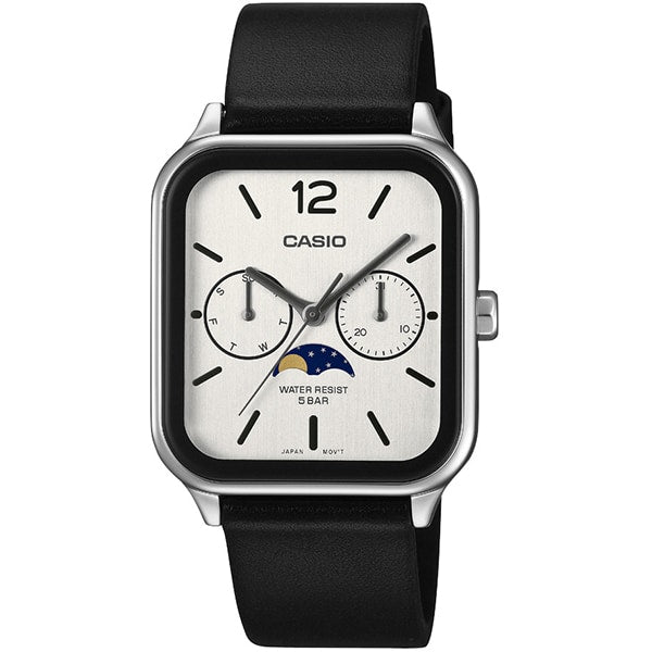CASIO Collection Analog Wristwatch MTP-M305L-7AJF with Moon Phase Function and Leather Strap - Stylish Timepiece for Everyday Wear
