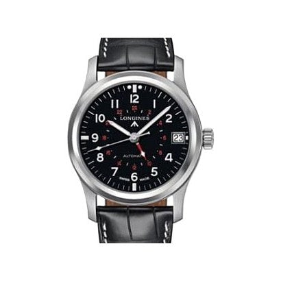 LONGINES L2.831.4.53.2 Heritage GMT Black Leather Watch with Dual Time Zone Functionality and 2 Year Warranty for Stylish Adventurers
